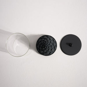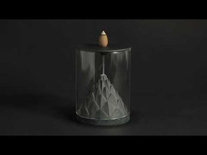 This collection of modern incense burners (or incense holders) is inspired by the terrarium. A glass cylinder encloses each piece, allowing the backflow incense plume to descend onto the concrete formation beneath, uninterrupted by air.