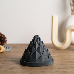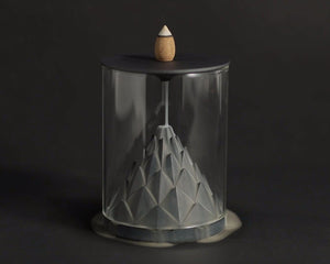 Nelumbo is the name of the plant genus that includes the Indian Lotus and its many variations, the inspiration for the design. This incense burner takes the form of a faceted geometric cone – an abstracted hybrid between a lotus bud and a pine cone. As the smoke plume descends from the backflow cone, it breaks into a multitude of tiny streams, winding around each of the cone’s geometric petals.