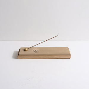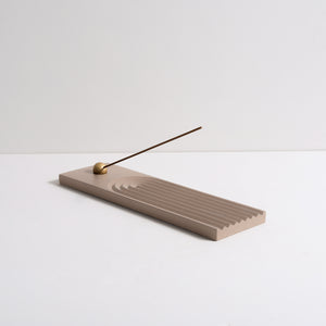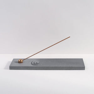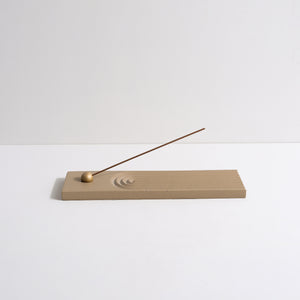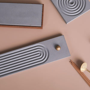 The Ridge Extends incense burner holds a bronze ball seated apart from a series of ripples that traces out a pattern reminiscent of a sea, extending out to some far away horizon. The incense holder is available in 5 colors, created from superior quality cement pigments (not dyes), resulting in sophisticated color finishes that will not fade with time.