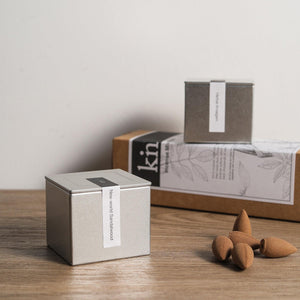 The Backflow Incense Collection is so named because the plume of the incense cones flows downwards instead of up. The almost water-like behavior of the plume makes it visually arresting.